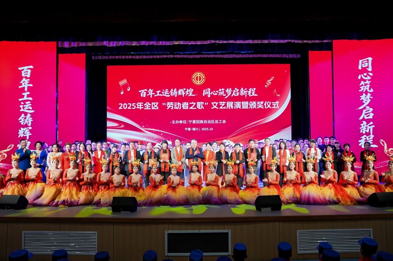 10月31日粤有钱,由宁夏回族自治区总工会主办的2025年全区“劳动者之歌”文艺展演暨颁奖仪式在银川市工人文化宫举行。全区各级劳动模范、获奖单位代表、演职人员及其他现场观众共400余人齐聚一堂,共同见证这场属于劳动者的艺术盛宴与荣耀时刻。